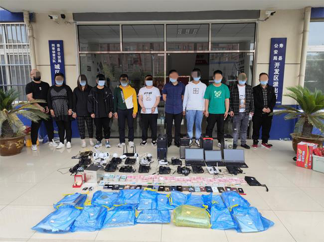 5月23日上午,專案組在山東煙臺(tái)成功搗毀2處窩點(diǎn),抓獲孟某志、藺某冰等6名犯罪嫌疑人。次日,在河北承德的專案組也成功搗毀1處窩點(diǎn),抓獲正在實(shí)施犯罪的團(tuán)伙成員11名,當(dāng)場(chǎng)扣押作案手機(jī)、電腦、網(wǎng)絡(luò)電話、銀行卡等大量作案工具,現(xiàn)場(chǎng)查獲涉案現(xiàn)金34.83萬元。